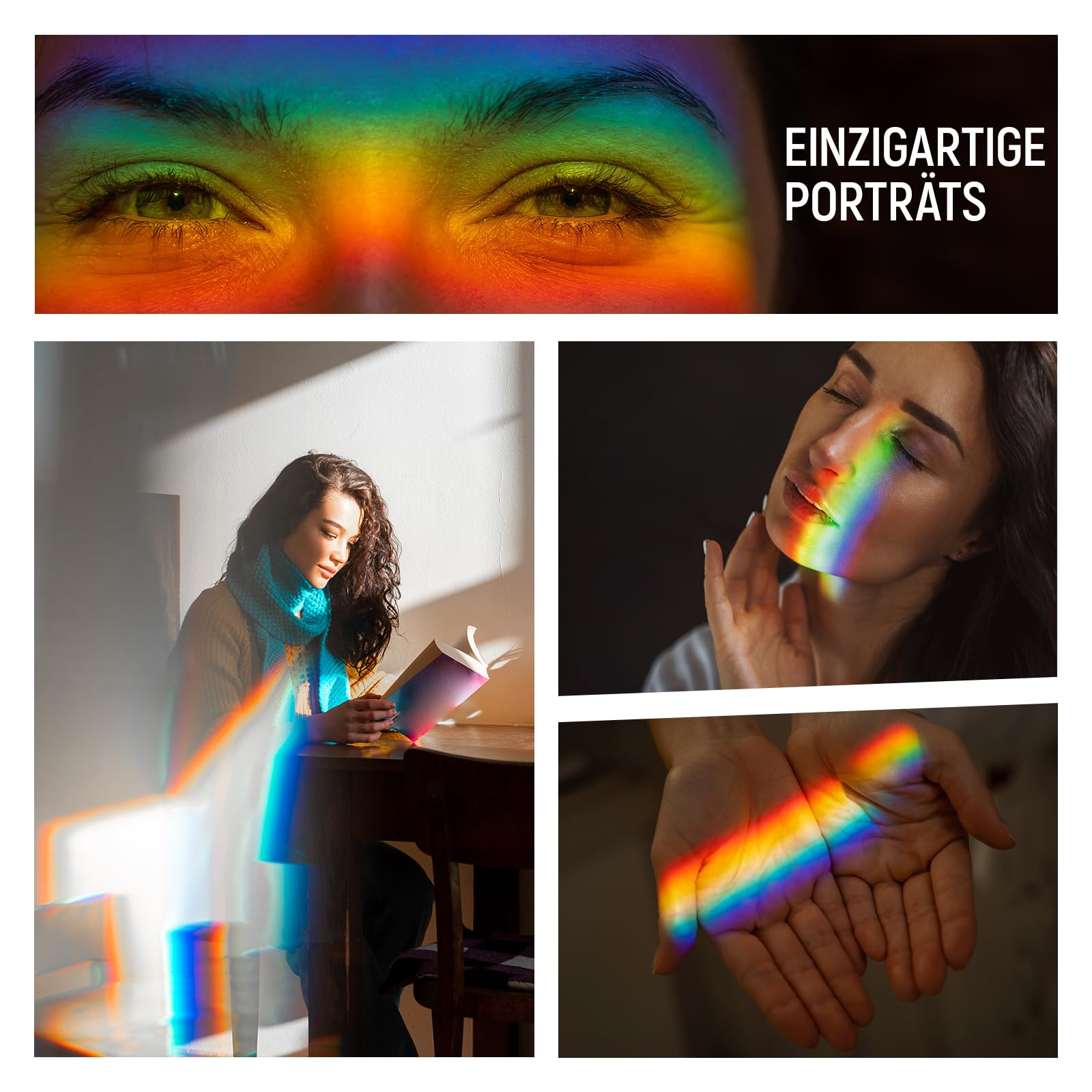 【Buntes Spektrum】 Das dreieckige Prisma bricht eine Lichtquelle und spaltet sie in verschiedene Farben auf, sodass auf Ihrer Fotografie ein vollständiges Spektrum an Regenbogenfarben erscheint Und sie alle haben eine gleichseitige Dreiecksbasis von 3,4cm x 3,4cm x 3,4cm (1,3 x 1,3 x 1,3), wodruch sie stabil auf dem Tisch stehen können Perfekt für Porträts, Albumcover, Hochzeitsfotos, Landschaften, wissenschaftliche Projekte, Lichtanalysen und mehr 【Lieferumfang】1 x 6/15cm Dreiecksprisma, 1 x 4/10cm Dreiecksprisma, 1 x 2,4/6cm Dreiecksprisma, 1 x Aufbewahrungskoffer, 1 x Reinigungstuch